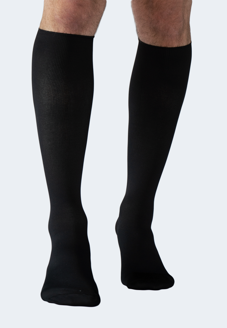 Calcetín con compresión graduada leve para viajes y descanso preventivo.La banda superior ancha no marca permitiendo que la compresión graduada ejerza un micro masaje estimulando la circulación de la sangre en las piernas.